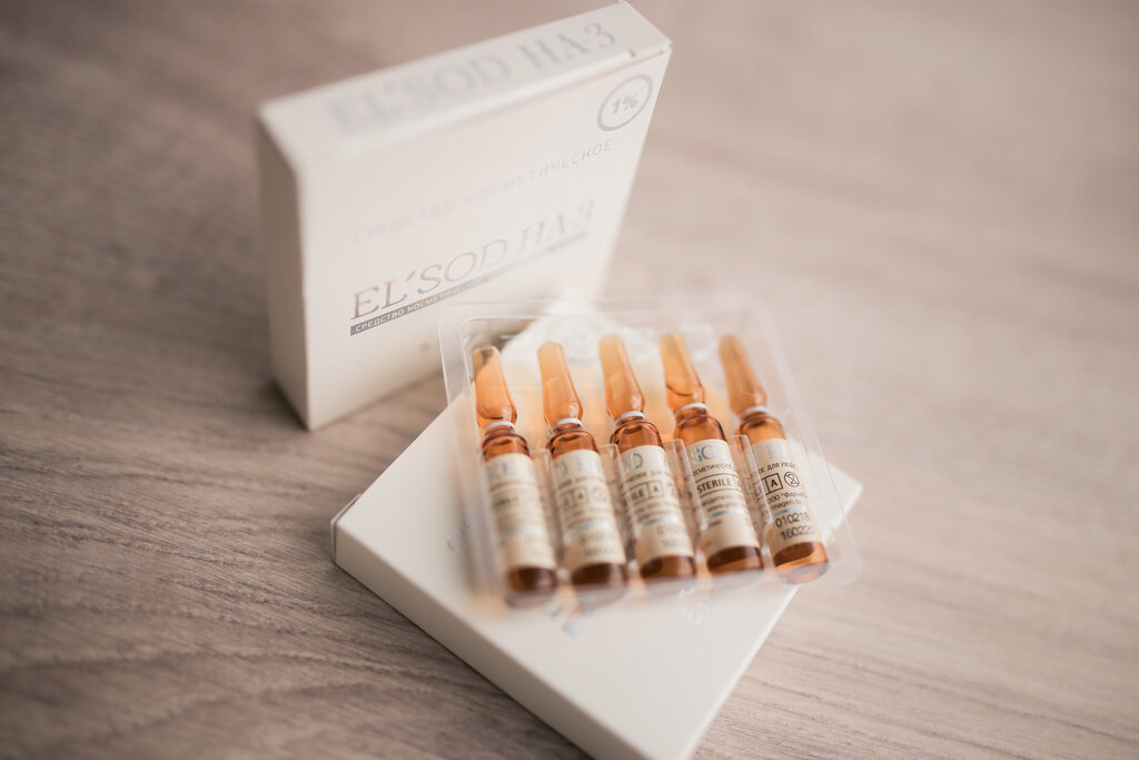 Состав: гиалуронат натрия с концентрацией 3 мг/мл, L-аргинина гидрохлорид, супероксиддисмутаза, янтарная кислота, декспантенол